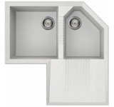 Lavello sintetico da incasso, bianco, angolare. Serie Rigae
