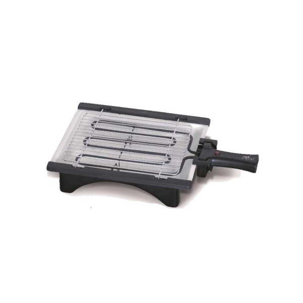 Griglia elettrica - potenza 2000 watt - termostato regolabile - griglie in acciaio inox - interruttore con spia - vaschetta ceramica - maniglie termoisolate - struttura in ceramica - nero-argento