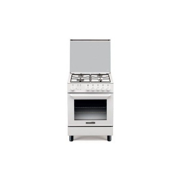 Cucina a gas 4 fuochi - forno a gas 53 lt. - forno 10 programmi statico - accensione elettrica - grill elettrico - termostato forno - vetro forno doppio - larg. 60 prof. 53 cm. - bianco
