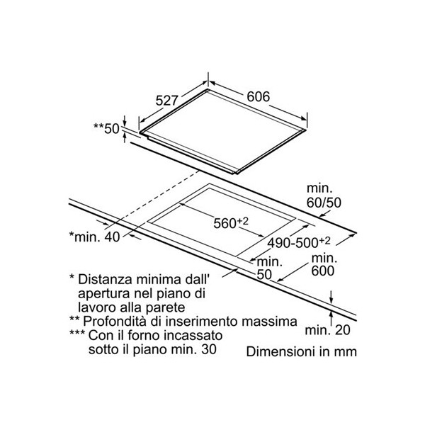 | Altezza minima della nicchia (mm) |