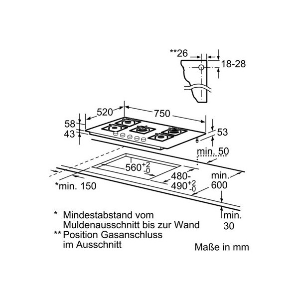 | Altezza minima della nicchia (mm) |