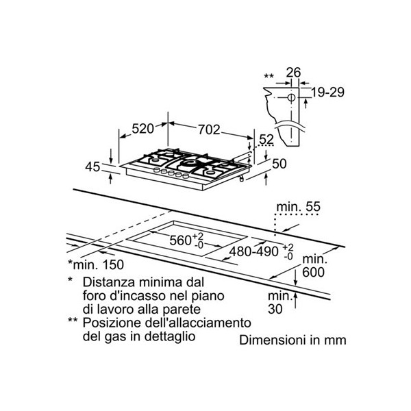 | Dimensioni del vano per l'installazione (AxLxP) (mm) |