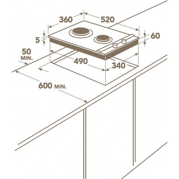 • 2 fuochi gas