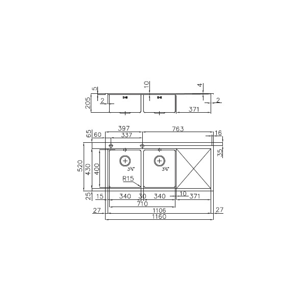 LAVELLO 2 VASCHE FOSTER MASTER 1252 051 DX