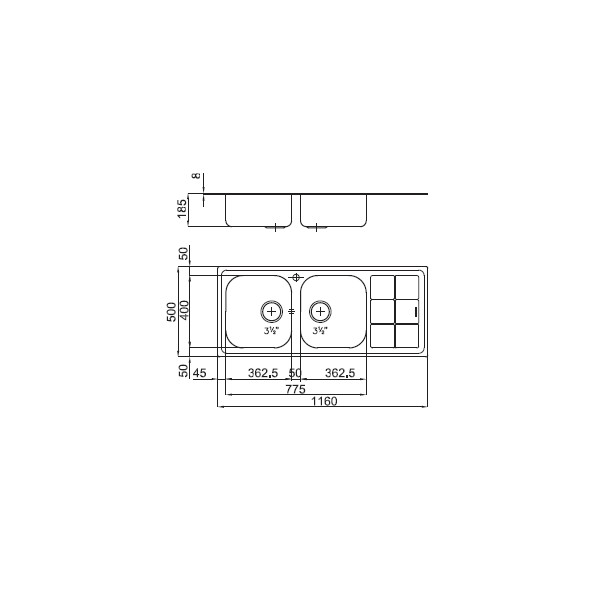 Vasche: 362.5x400xh185 mm (2x)