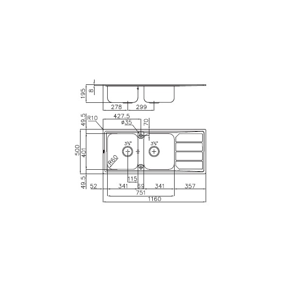 LAVELLO 2 VASCHE  FOSTER ELETTRA 5812 061 DX