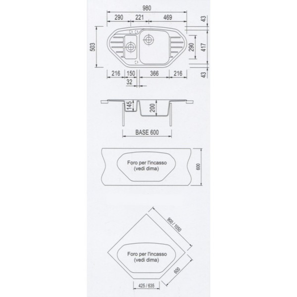 LAVELLO PLADOS 2 VASCHE 98x50 ULTRAMETAL SPAZIO 98.15 Vedi a schermo intero
