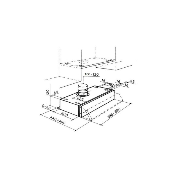 Le cappe di questa serie consentono una facile installazione in qualsiasi tipo di pensile. L'antina frontale in posizione di riposo si allinea perfettamente al pensile in un rigoroso equilibrio di linee.