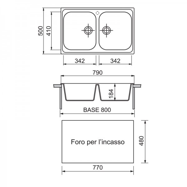LAVELLO 2 VASCHE DA INCASSO PLADOS IN ACCIAIO INOX OLYMPUS CO07920 SATINATO Vedi a schermo intero