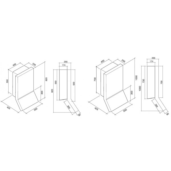 da 55cm e Altezza 100cm a 800m³/h
