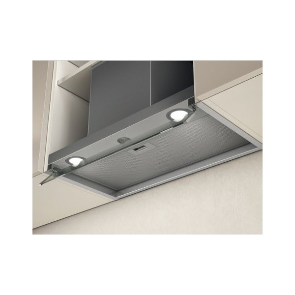 Elica Boxin IX/A/60. Tipo di estrazione: Aspirante, Potenza massima di estrazione: 430 m³/h, Rumorosità (velocità bassa): 45 dBi. Modello: Incasso, Tipo di lampada: Alogena, Colore del prodotto: Acciaio inossidabile. Carico di collegamento: 210W, Potenza lampada: 20W. Larghezza: 60 cm, Profondità: 34 cm, Altezza: 33,88 cm