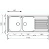 LAVELLO ACCIAIO INOX SATINATO ZENITH 210 3" 116X50 2 VASCHE A DESTRA CM 011227 DCSSP Vedi a schermo intero