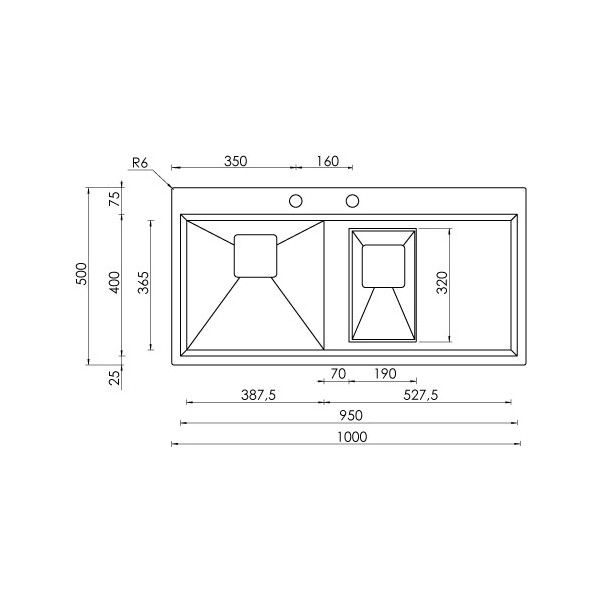 LAVELLO ACCIAIO INOX SATINATO GLAMOUR MIX 3" 100X50 2 VASCHE A SINISTRA SLIM CM 012845 SCSSP Vedi a schermo intero