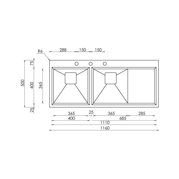 LAVELLO ACCIAIO INOX SATINATO GLAMOUR MIX 3" 116X50 2 VASCHE A SINISTRA SLIM CM 012847 SCSSP Vedi a schermo intero