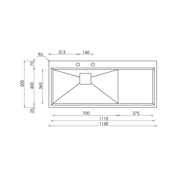 LAVELLO ACCIAIO INOX SATINATO GLAMOUR MIX 3" 116X50 1 VASCA A DESTRA SLIM CM 012849 DCSSP Vedi a schermo intero