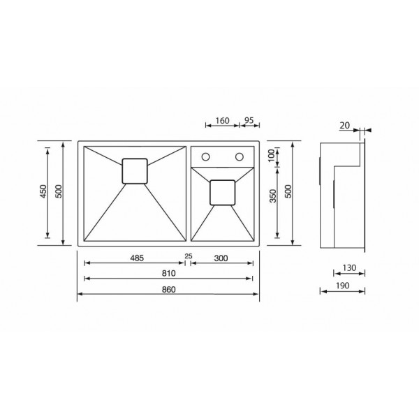 profondità vasche: mm 190 - 130