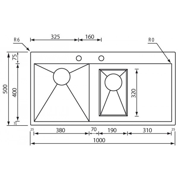 profondità vasche: mm 190 - 130