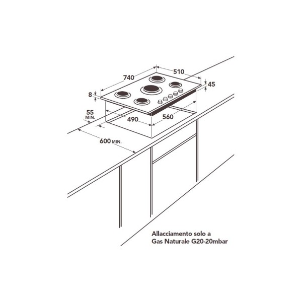 • Allacciamento Solo a Gas Naturale G20-20mbar