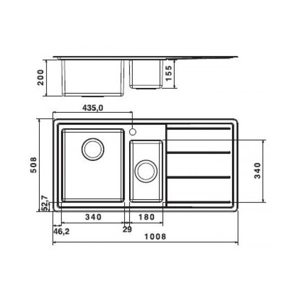 - 1 vasca 340x400mm e 1 vasca 180x340mm con gocciolatoio a destra;