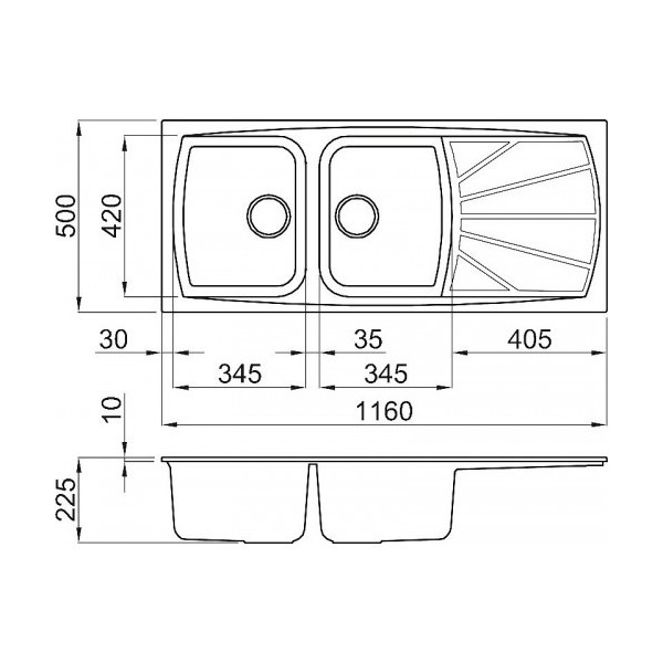 2 vasche 345x420mm con gocciolatoio,