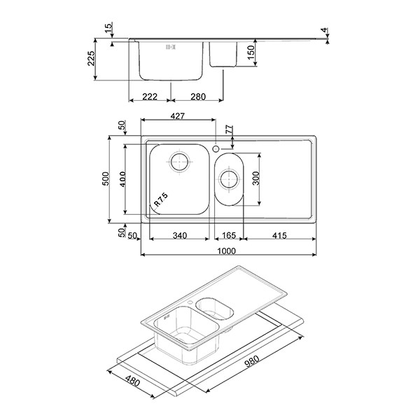 Dimensioni vasca sinistra: 340 x 400 x 210 mm