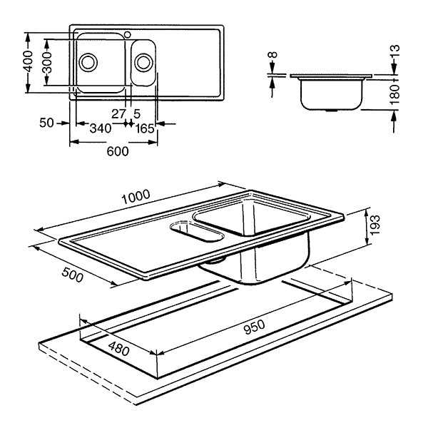 Dimensioni vasca sinistra: 340 x 400 x 180 mm