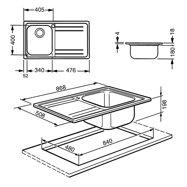 Dimensioni vasca sinistra: 340 x 400 x 180 mm