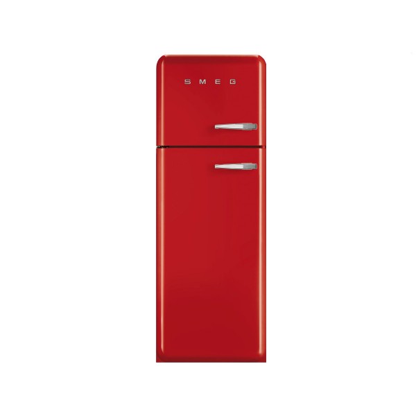 Frigorifero due porte anni '50, rosso, 60 cm. Ventilato. Classe energetica A++