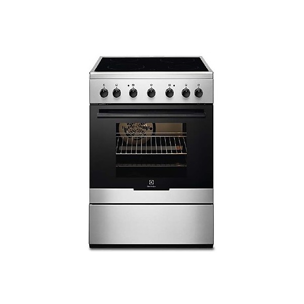 EKC-61360OX Electrolux Cucina - Forno elettrico multifunzione - Funzioni cottura forno: Tradizionale, Finale, Grill, Ventilata - Contaminuti - CoolDoor (porta fredda 2 vetri termoriflettenti) - Smalto Clear n’ Clean - Classe energetica A - Piano cottura elettrico in vetroceramica - Accensione integrata nella manopola - 4 zone di cottura - Assorbimento massimo 7,8 kW - Potenza regolabile su 9 livelli - Spia di calore residuo - Cassetto portautensili - Estetica INOX