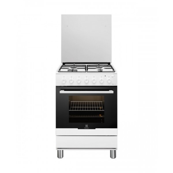 Electrolux RKG61161OW. Installazione: Libera installazione, Colore del prodotto: BIANCO, Tipo di controllo: Manopola. Capacità interna forno totale: 55 L, Tipo di forno: Gas, Dimensione del forno: Media. Tipo di piano cottura: Gas. Timer: Meccanico. Classe efficienza energetica: A, Consumo energetico (convenzionale): 1,61 kWh, Consumo energetico (convenzionale): 5.79