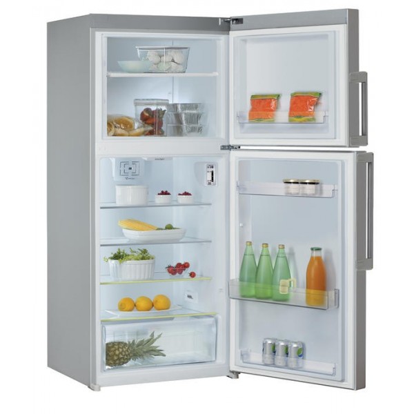 Frigorifero 2 porte - capacità frigo 299 lt - classe energetica  polliciA++ pollici - ventilato con sbrinamento automatico - consumo energia 276 kwh/anno - display lcd - 4 ripiani in cristallo - larg. 71 alt. 175 prof. 76 cm. - dispenser rumorosità 42 db - silver