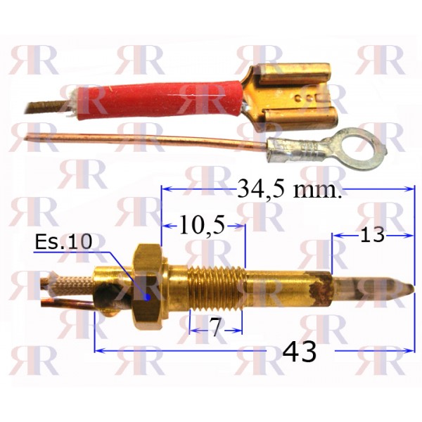 TERMOCOPPIA BIFILARE CON FASTON LUNGA 600 mm.