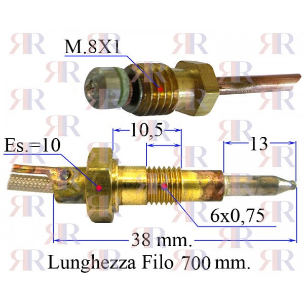 TERMOCOPPIA LUNGA 70CM CON FILETTO 8X1